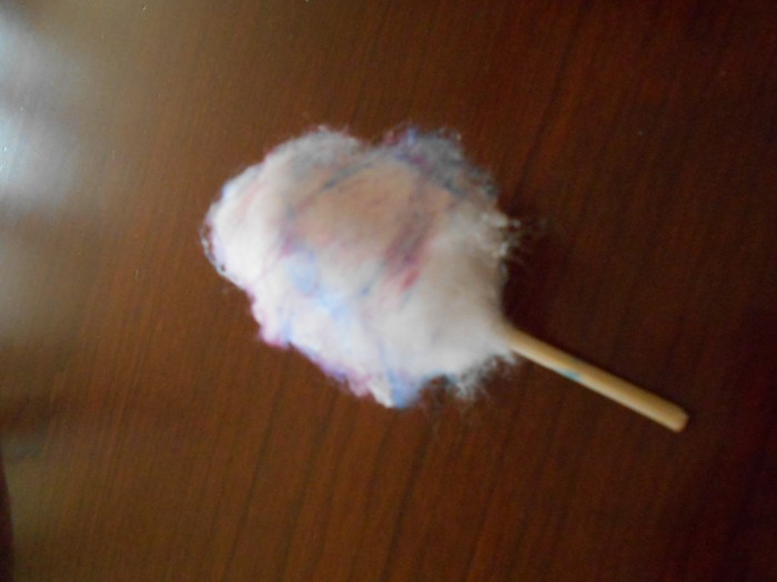When it’s dry, you can color the cotton candy with the markers. If it’s too light, the color might not show up.