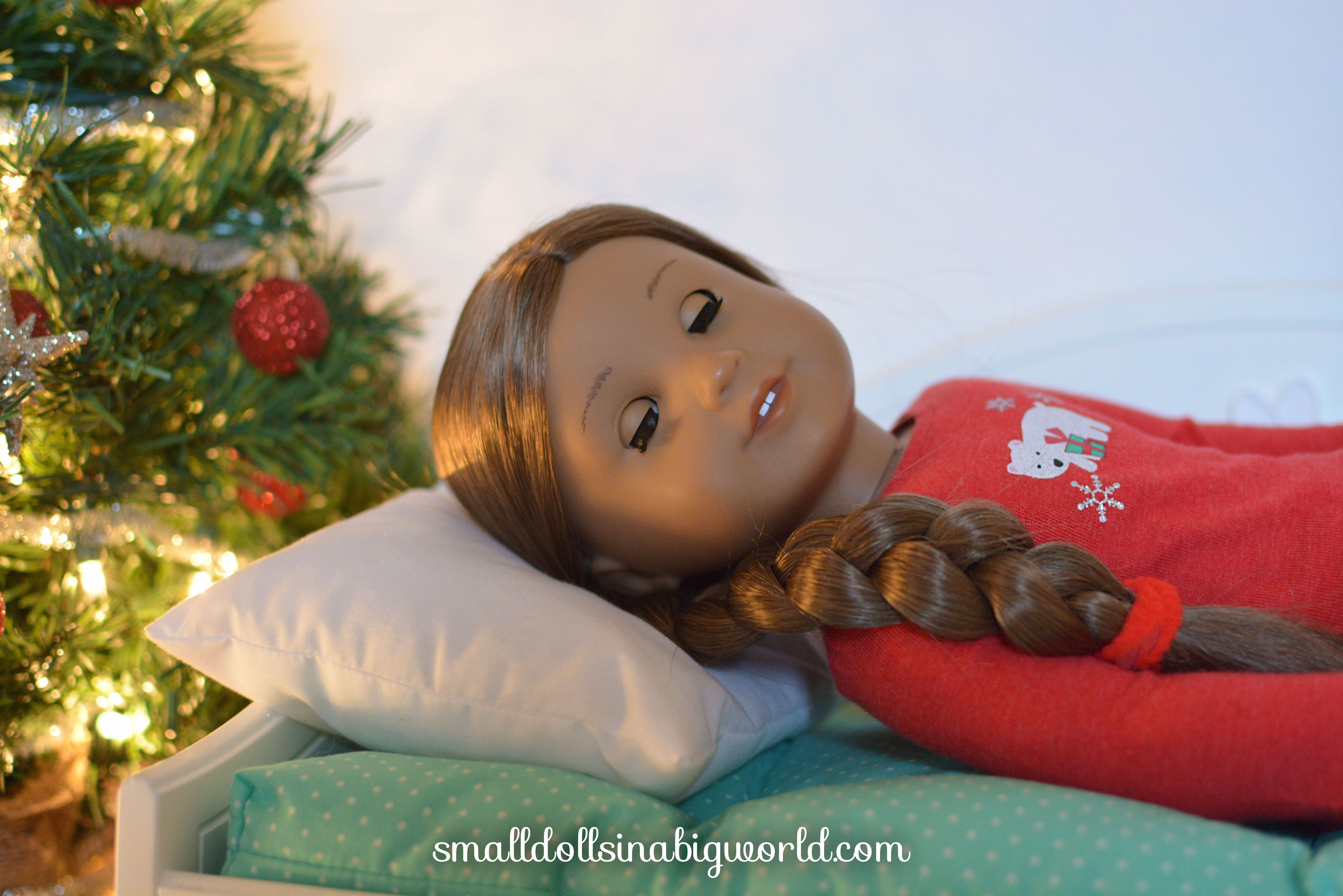 When the polar bear pajamas were first released, I thought they were adorable and I knew I would probably add them to my doll clothing collection sometime. The rest of my sisters were ordering a few things with free shipping in September, I think, and I decided to buy these pajamas. I was going to save them for Sarah to wear on Christmas morning, since that’s her birthday. But I really wanted to get them out and so I waited until the first week of December and put them on Kanani, as an early birthday present. Her birthday was December 9th.