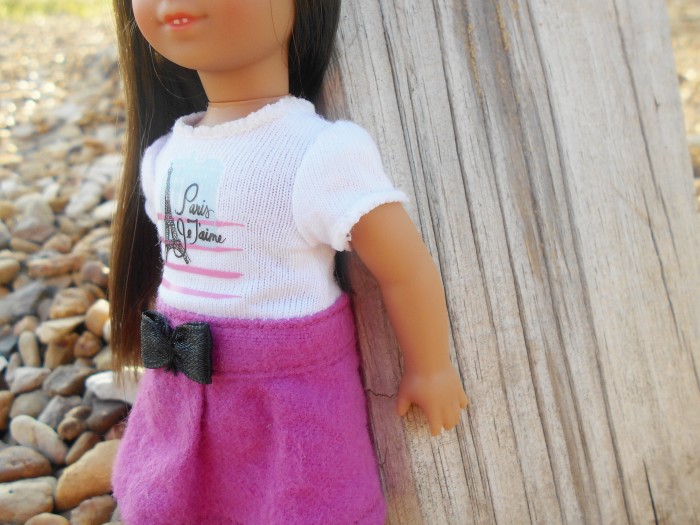 I think the only negative part of her is that her skirt is connected to her shirt. While is makes for quick undressing, it doesn’t look like the outfit for the 18″ dolls.