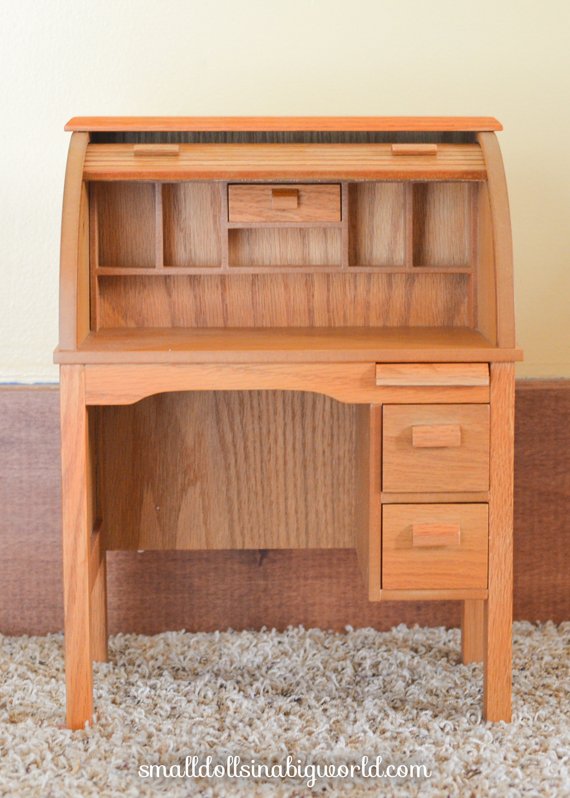 For Christmas, Catlover02 and I got Kit’s Desk from our grandma (thank you!). Even though it’s from another time period, I think it’s pretty timeless and it’s a great furniture piece for our dollhouse. :)